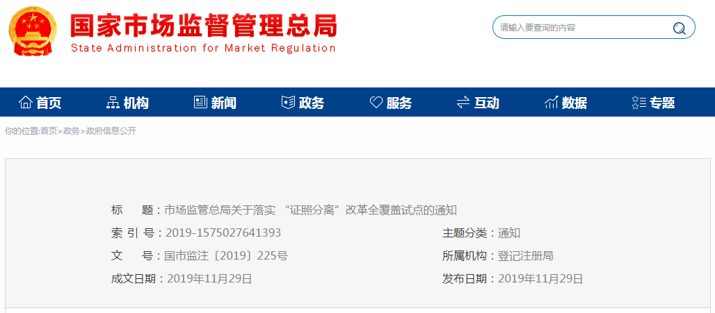 市場監(jiān)管總局關(guān)于落實“證照分離”改革全覆蓋試點的通知