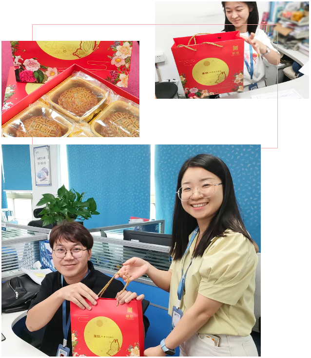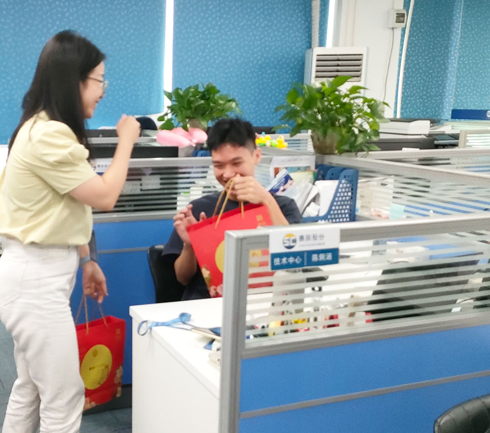 秋風(fēng)送爽,丹桂飄香,又是一年中秋至。為感謝大家一直以來為公司的辛勤付出,讓全體員工度過一個(gè)愉快的中秋佳節(jié),廣東賽辰檢測服務(wù)股份有限公司工會(huì)委員會(huì)將一份份承載著深情厚誼的中秋福利——精美月餅,親手送到每一位員工的手中。希望這份節(jié)日禮物能為大家?guī)砉?jié)日的喜悅,讓大家在繁忙的工作之余,感受到公司的關(guān)懷與溫暖。